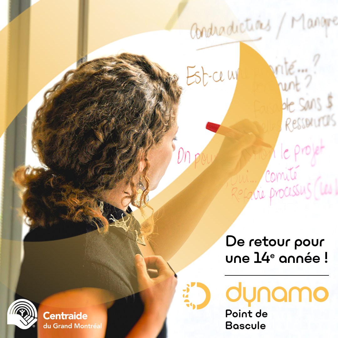 Spécialisé en processus collaboratif, Dynamo aide les acteurs communautaires à transformer leurs pratiques pour accroître leur impact social. Son programme Point de bascule offre un soutien gratuit aux tables de quartier, instances de concertation et OBNL soutenus par Centraide lors de moments de transition ou de développement.