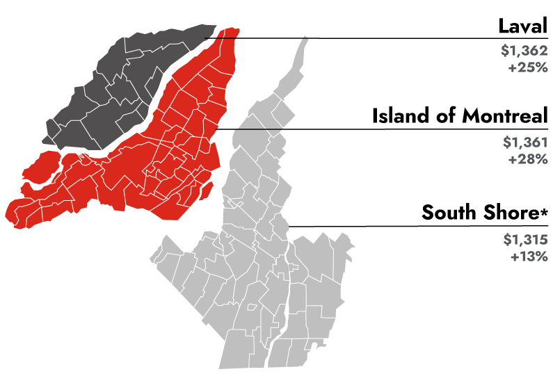 Rental costs have increased everywhere, so there is very little difference between Montreal, Laval, and the South Shore.