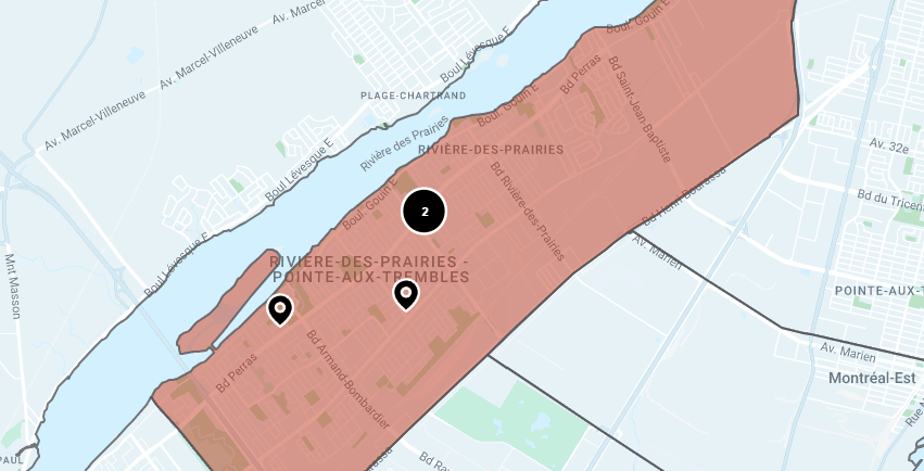 Les personnes immigrantes représentent 35 % de la population (19 915 personnes), un taux légèrement supérieur à la moyenne montréalaise (33 %). Rivière-des-Prairies se distingue par le taux le plus élevé sur l’île de personnes immigrantes établies depuis plus de cinq ans, soit 95 % de la population immigrante, contre 83 % à Montréal. 37 % d’entre elles (13 410 personnes) vivent dans le secteur ouest.